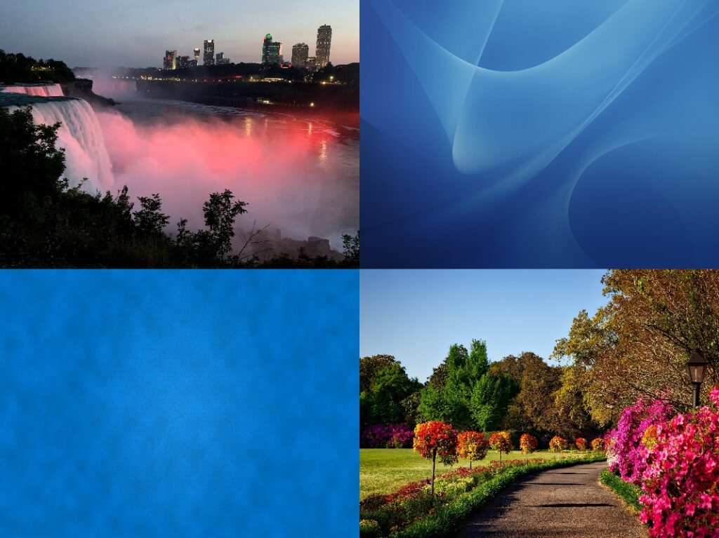 These are the four images that we will run the tests on. The park is in daylight. Niagara Falls is a little on the darker side. The other two images are patterns that normally can be used as web background.