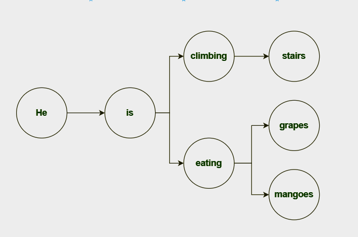 So, if you look at the diagram above, you will see there is only 1 way of going from ‘He’ to ‘is’. However from ‘is’, you can go to ‘climbing’ or ‘eating’. So, the distribution in this case is 0.5 each.