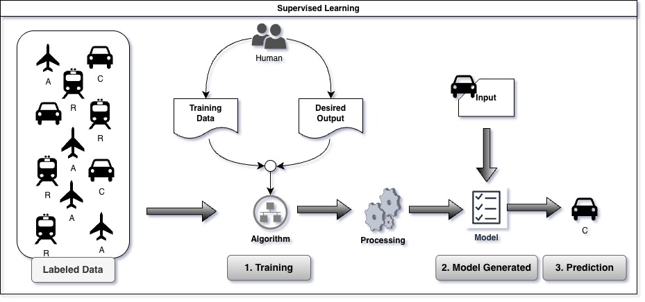 Supervised learning may be used for spam detection in emails using support vector machines, or it can predict housing prices and fluctuations based on linear regression models. One of the most used application is image classification.