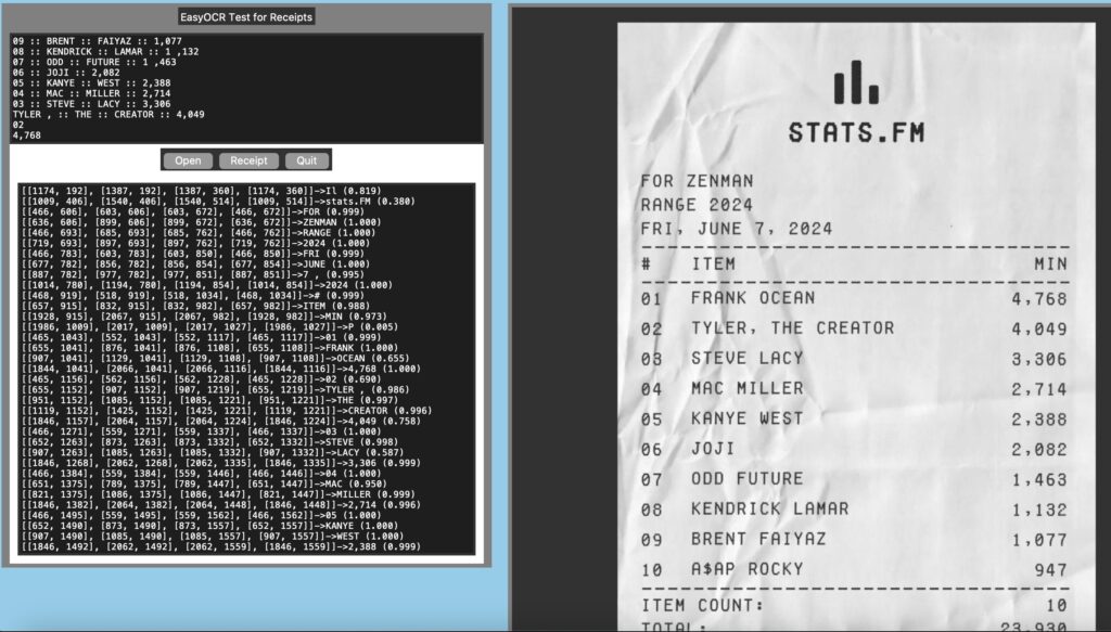 Label(left_frame, text="EasyOCR Test for Receipts").grid(row=1, column=0, padx=5, pady=5)