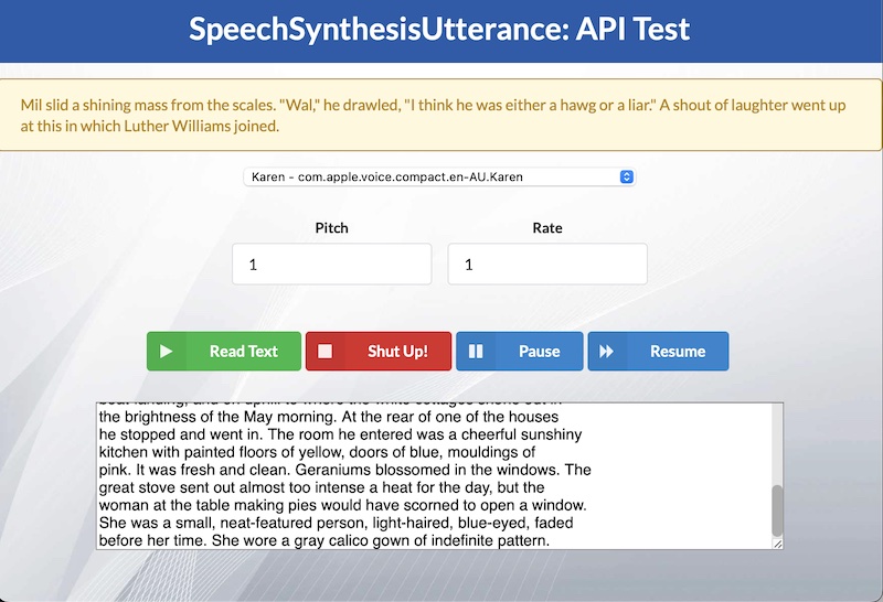 Like I said before, all major browsers in use today support this API. However, the voices that are available depends on the operating system being run on. I created this test project to try out the API. Hope you find this useful. Ciao for now!