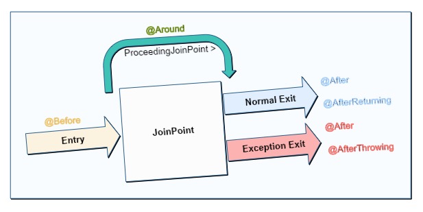 ProceedingJoinPoint: This is used only with @Around advice. Proceeding join point is used to move forward in the execution.